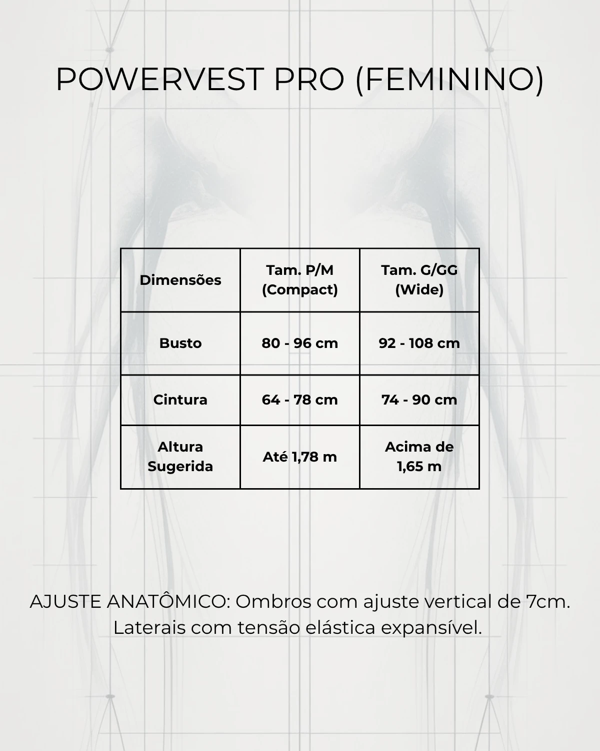O equilíbrio perfeito entre carga e conforto em um colete de peso. O PowerVest Pro Feminino foi esculpido para respeitar a anatomia do busto, entregando 2.4kg de resistência invisível para intensificar a queima calórica e a tonificação.